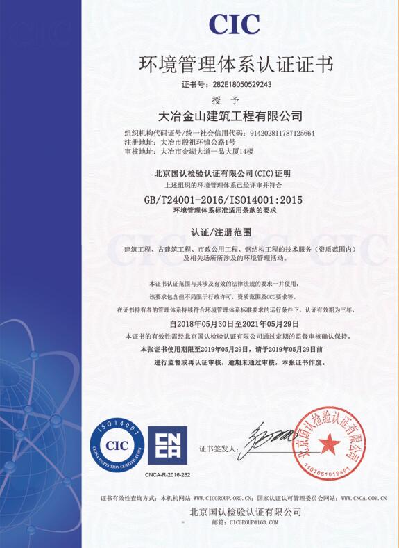 環境管理體系認證證書...